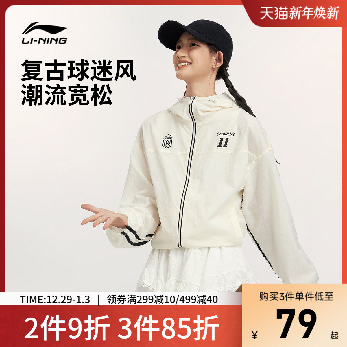 李宁外套女秋季新款复古足球开衫连帽卫衣防风薄款上衣夹克运动服