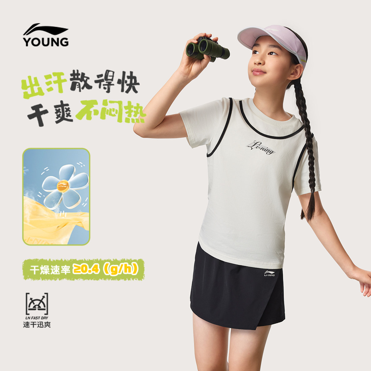 凉感|李宁女孩速干套装女童2026新款短袖短裤上衣裤子夏季童装