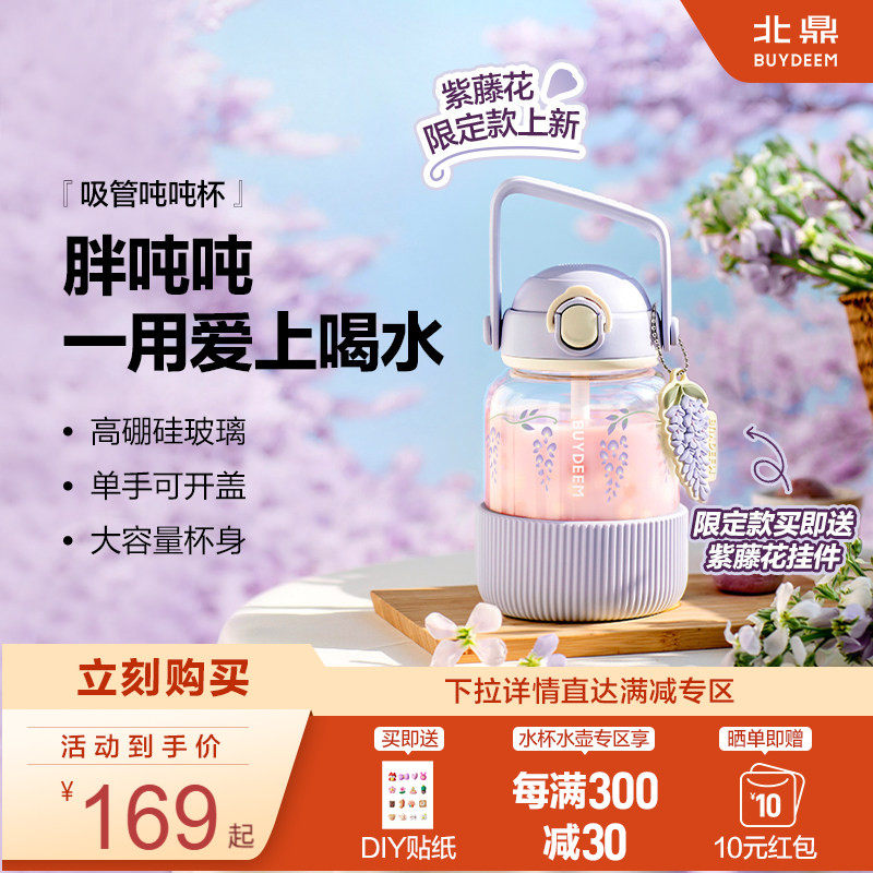 【新品】北鼎紫藤花杯吨吨杯吸管杯耐高温大容量水杯高颜值杯子