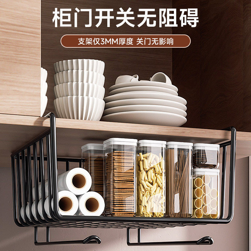 厨房吊柜门下置物架悬挂吊篮挂架分层储物架挂纸巾保鲜膜收纳架子