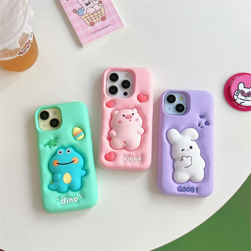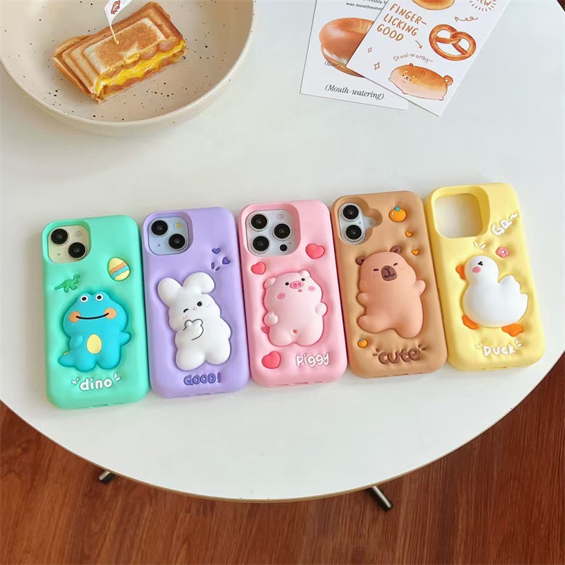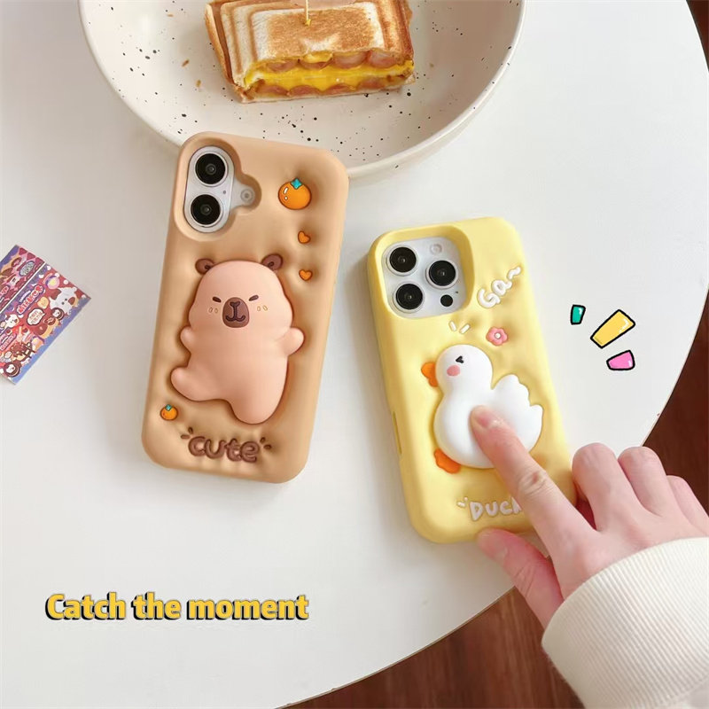 可以按压捏捏卡通公仔适用苹果16e手机壳iPhone15promax软硅胶套14por全包保护12立体11可爱13女新款16pm加厚