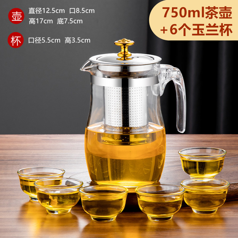 玻璃飘逸杯茶壶功夫茶具茶壶茶杯套装单壶750ml起