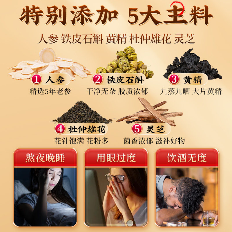 同仁堂人参枸杞玛咖黄精肉苁蓉杜仲八宝茶男人熬夜补精强肾养生茶