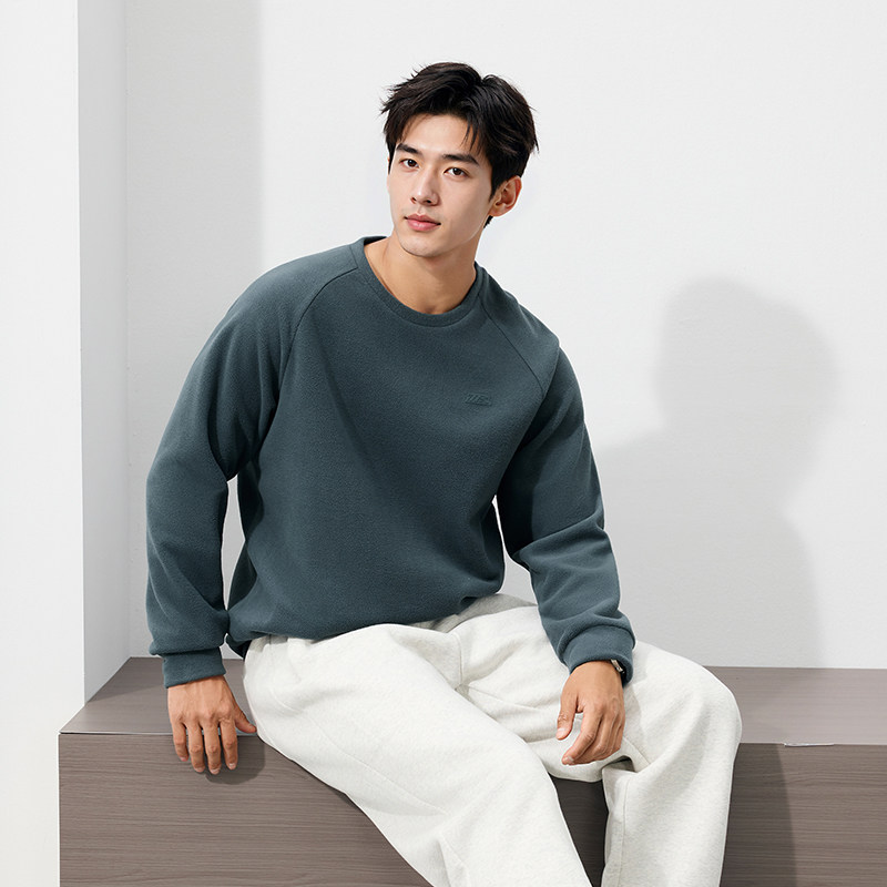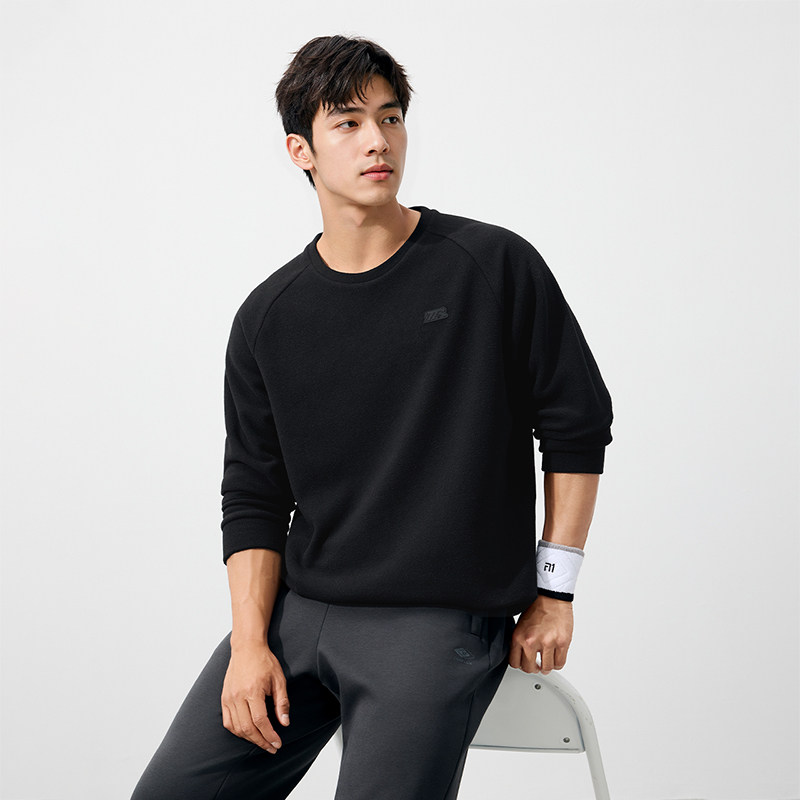 361运动卫衣男2025冬季新款男士加绒保暖圆领卫衣休闲摇粒绒上衣