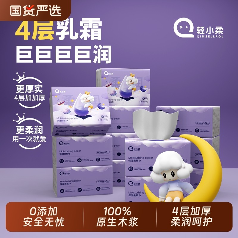 轻小柔保湿云柔巾婴幼儿专用护鼻柔纸巾柔软乳霜纸150抽箱装囤货