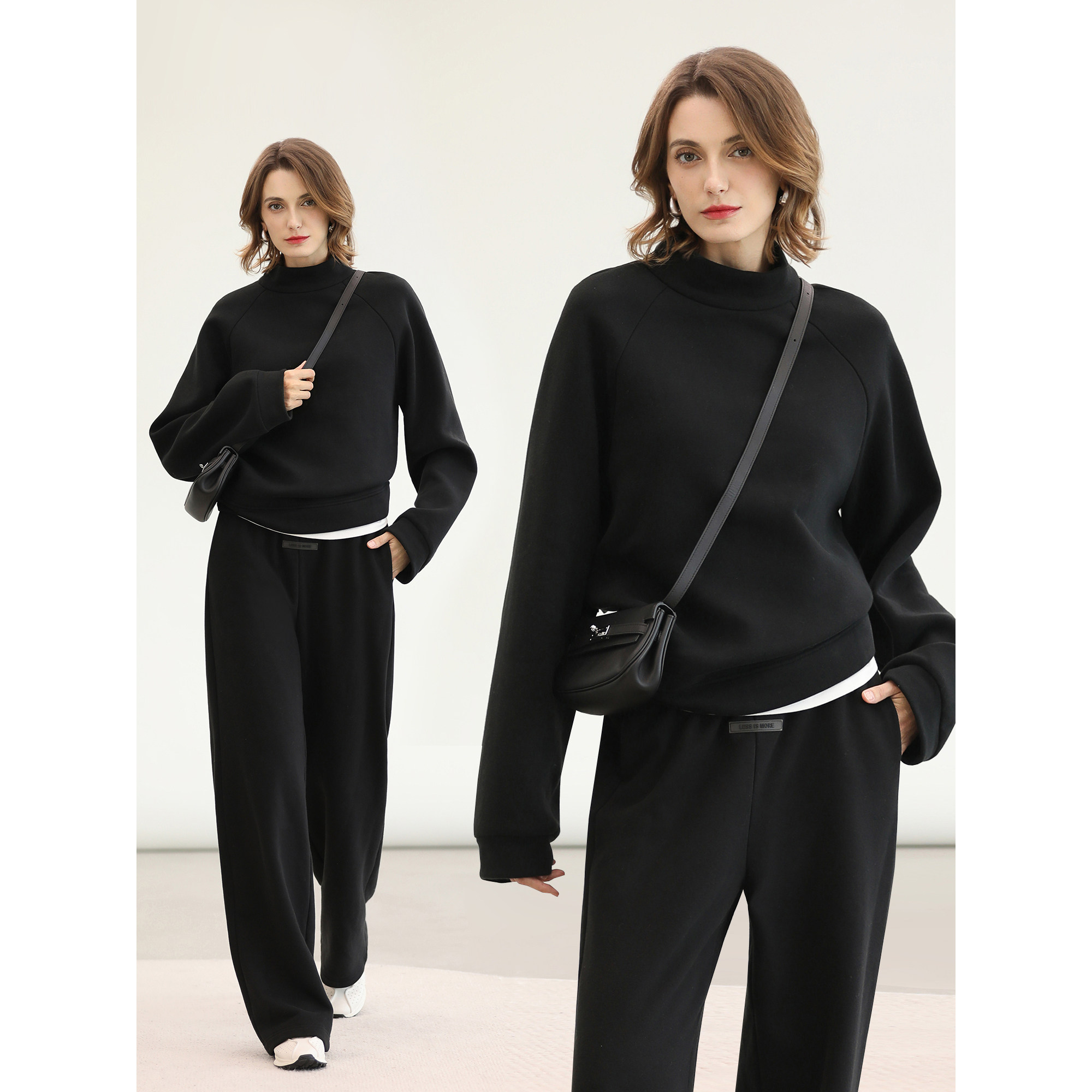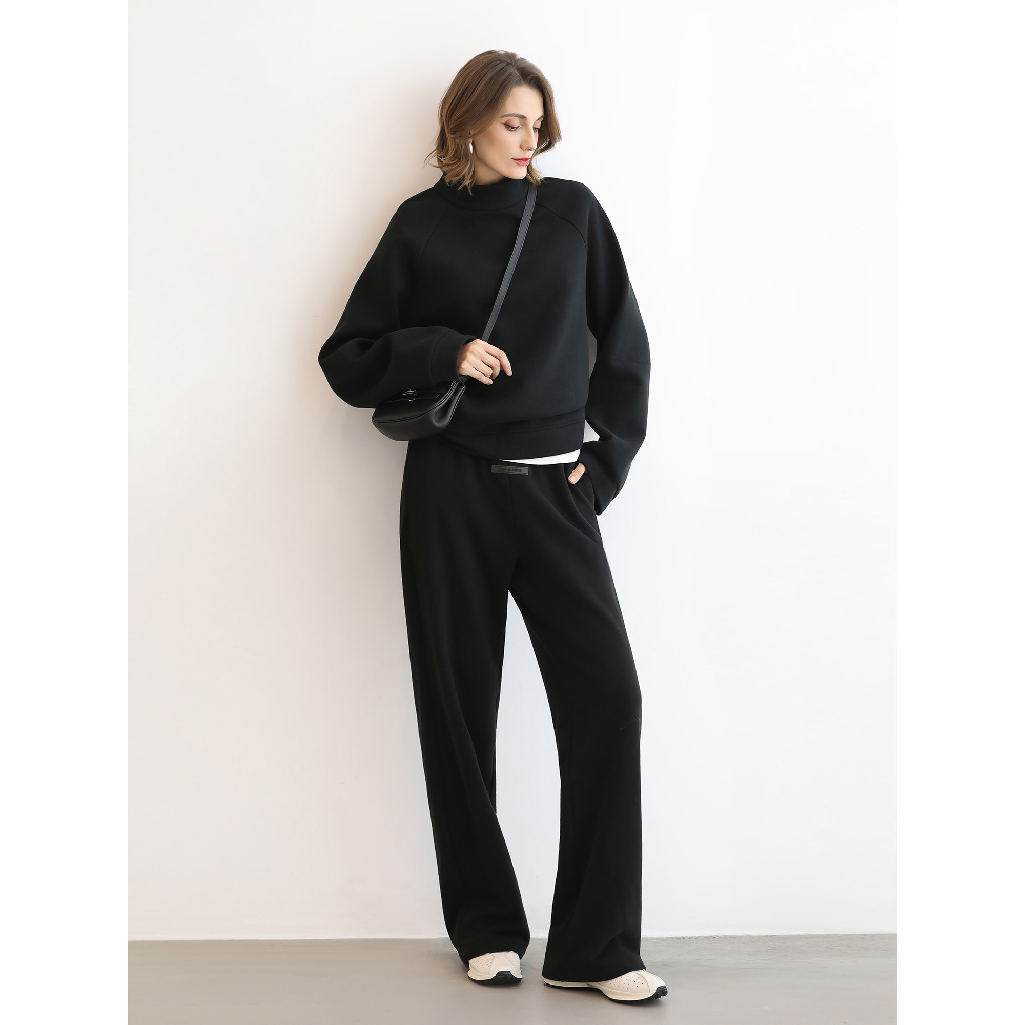 COCOBELLA自发热黑色阔腿裤秋冬保暖加厚休闲薄绒女裤PA3256