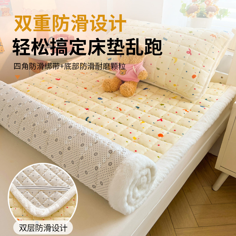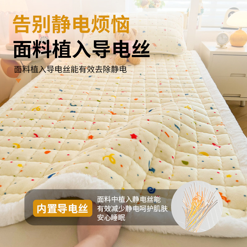 加绒加厚牛奶绒床褥 抗静电不掉毛