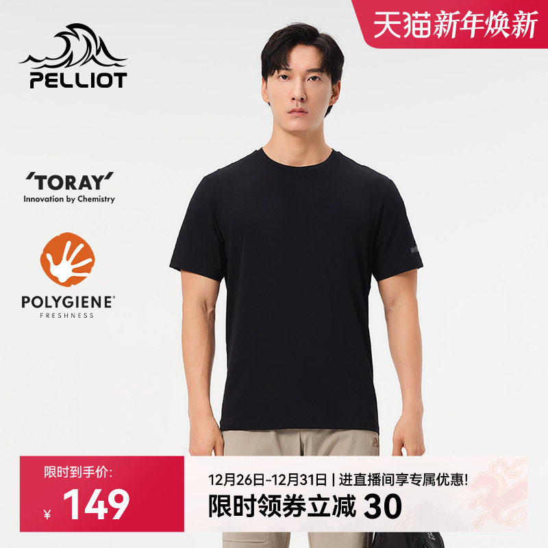 伯希和速干T恤男透气圆领黑色休闲短袖上衣户外徒步运动半袖内搭