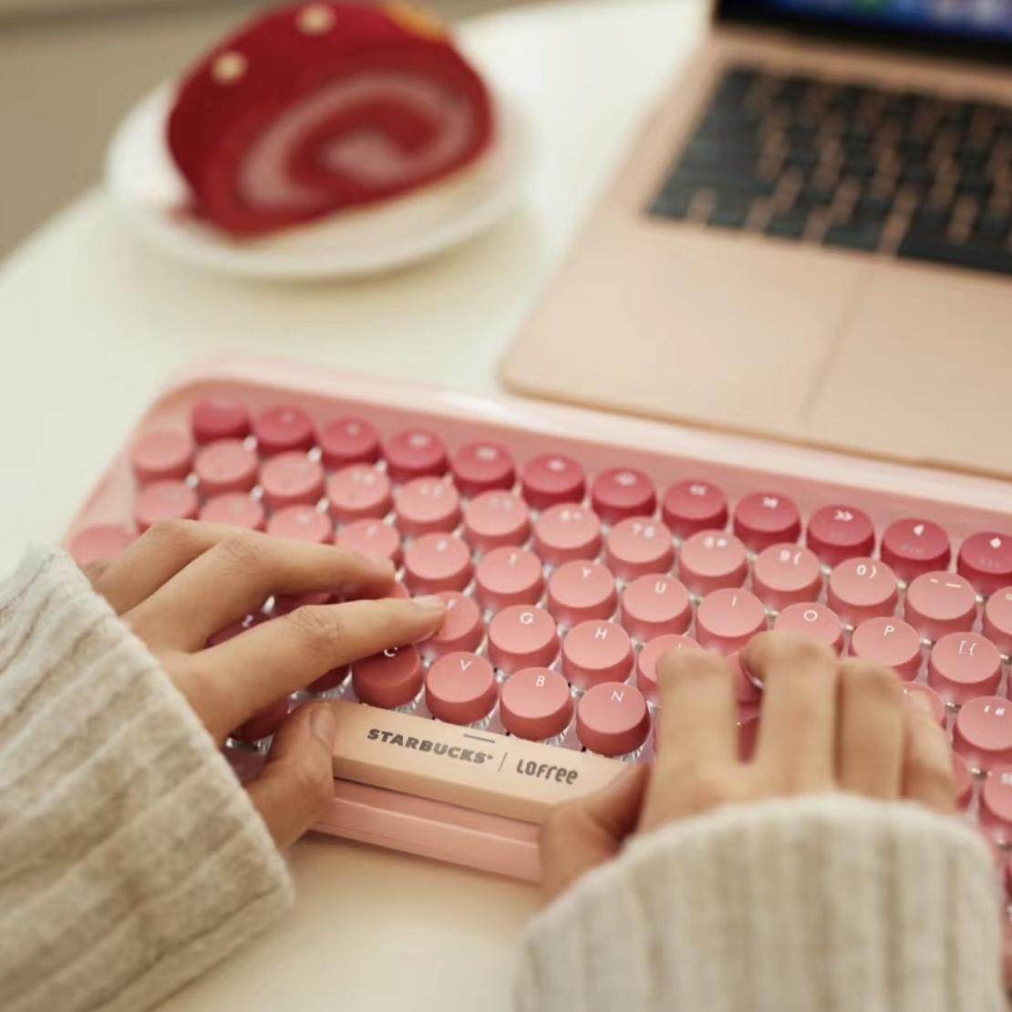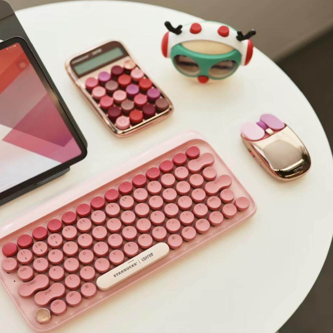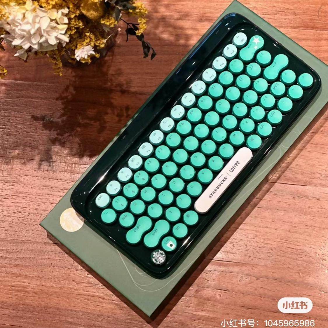现货Lofree洛斐粉底液圆点星巴克联名无线蓝牙机械键盘鼠标套装