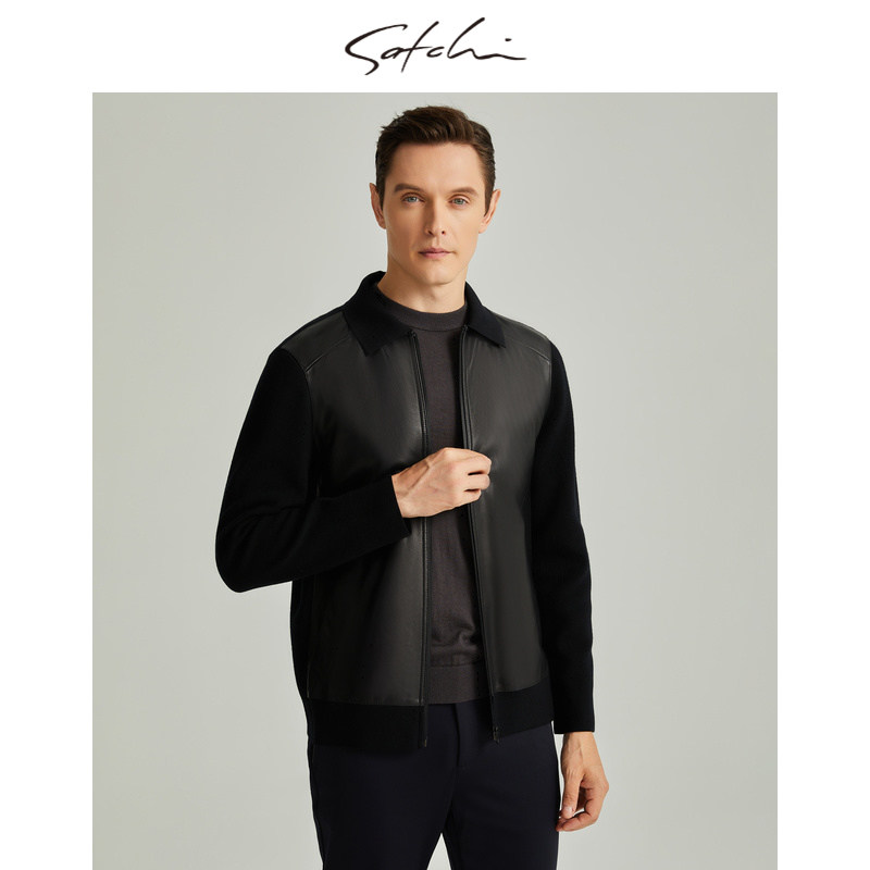 [轻奢羊皮]沙驰男装男士皮衣冬季新款商务休闲高端保暖皮夹克外套