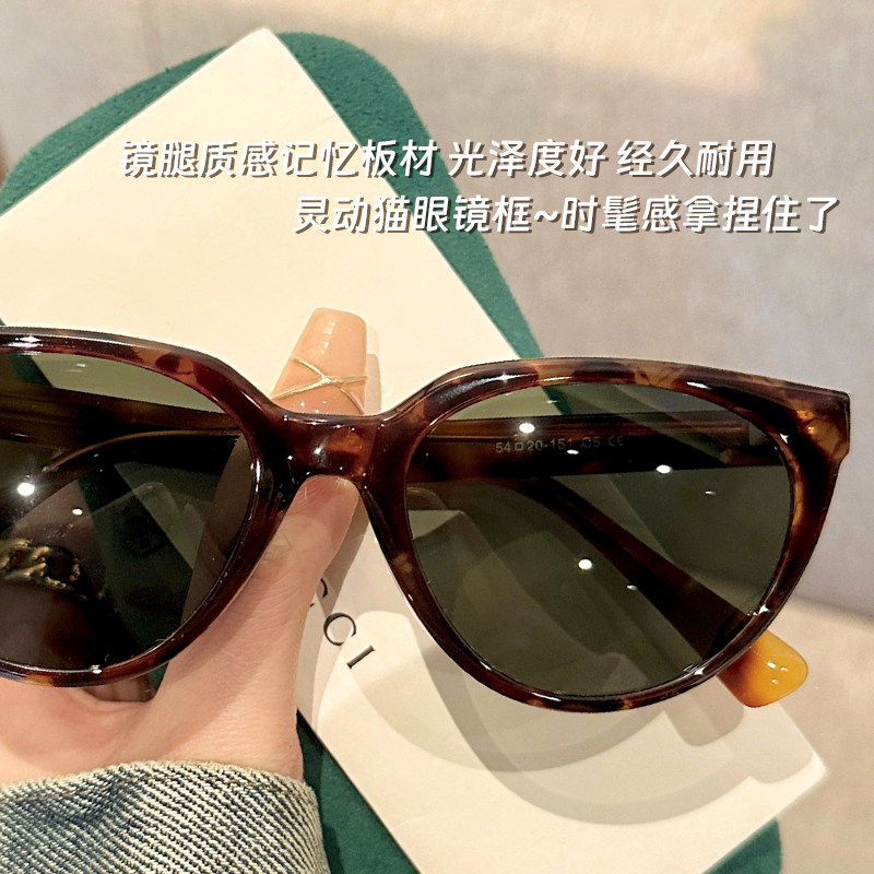 复古玳瑁色猫眼框偏光墨镜女适合方圆脸近视防紫外线太阳眼镜板材