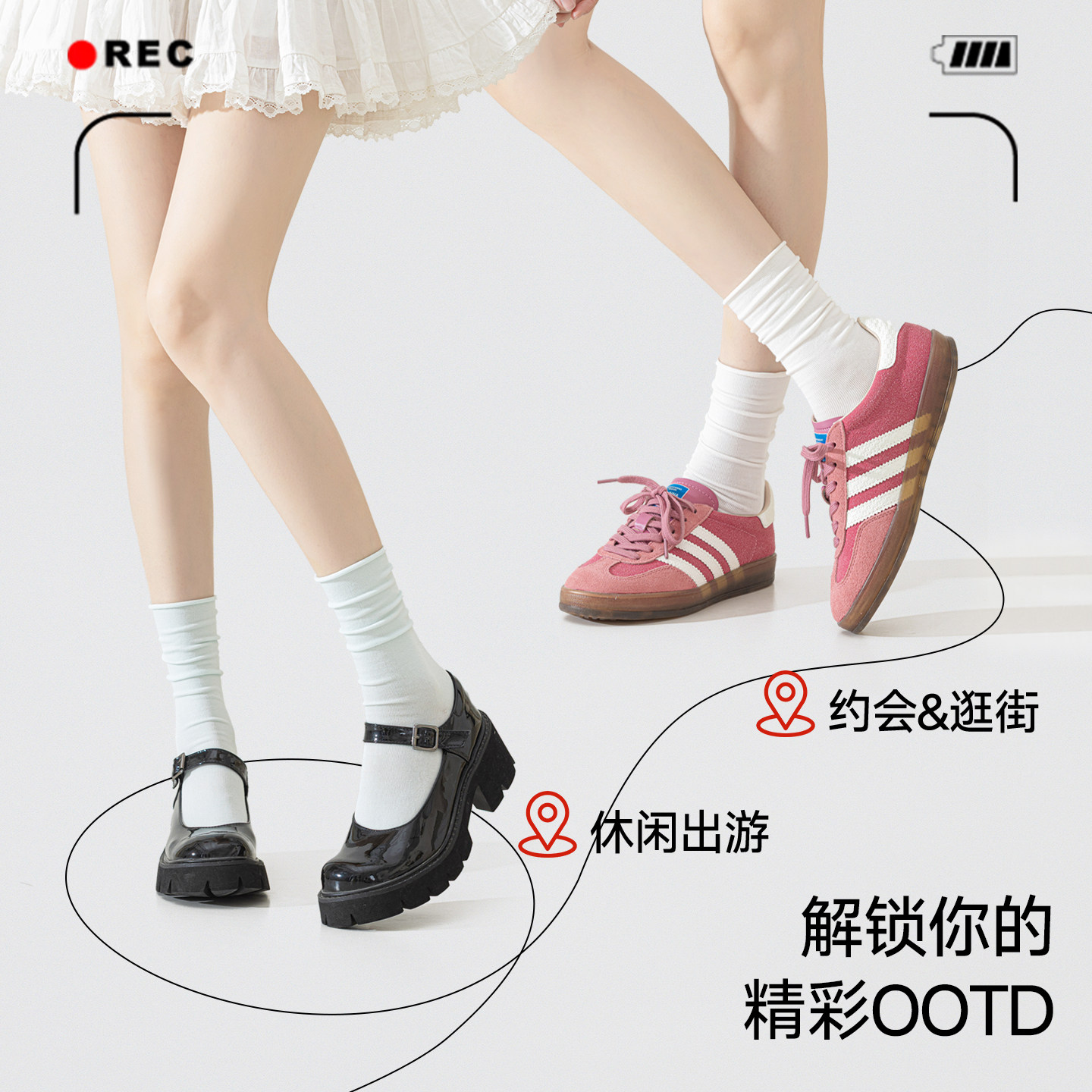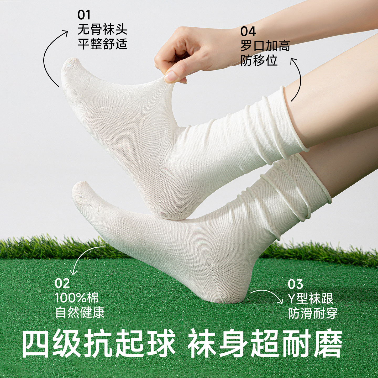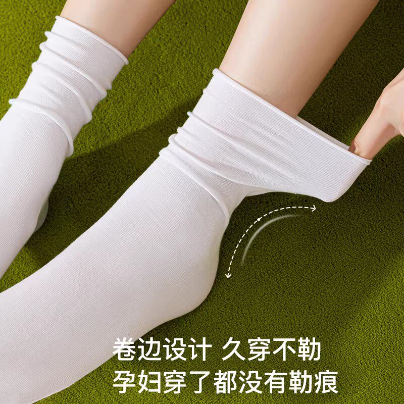 卷边堆堆袜子女夏季薄款纯棉无骨中筒袜抑菌防臭春白色搭配小皮鞋