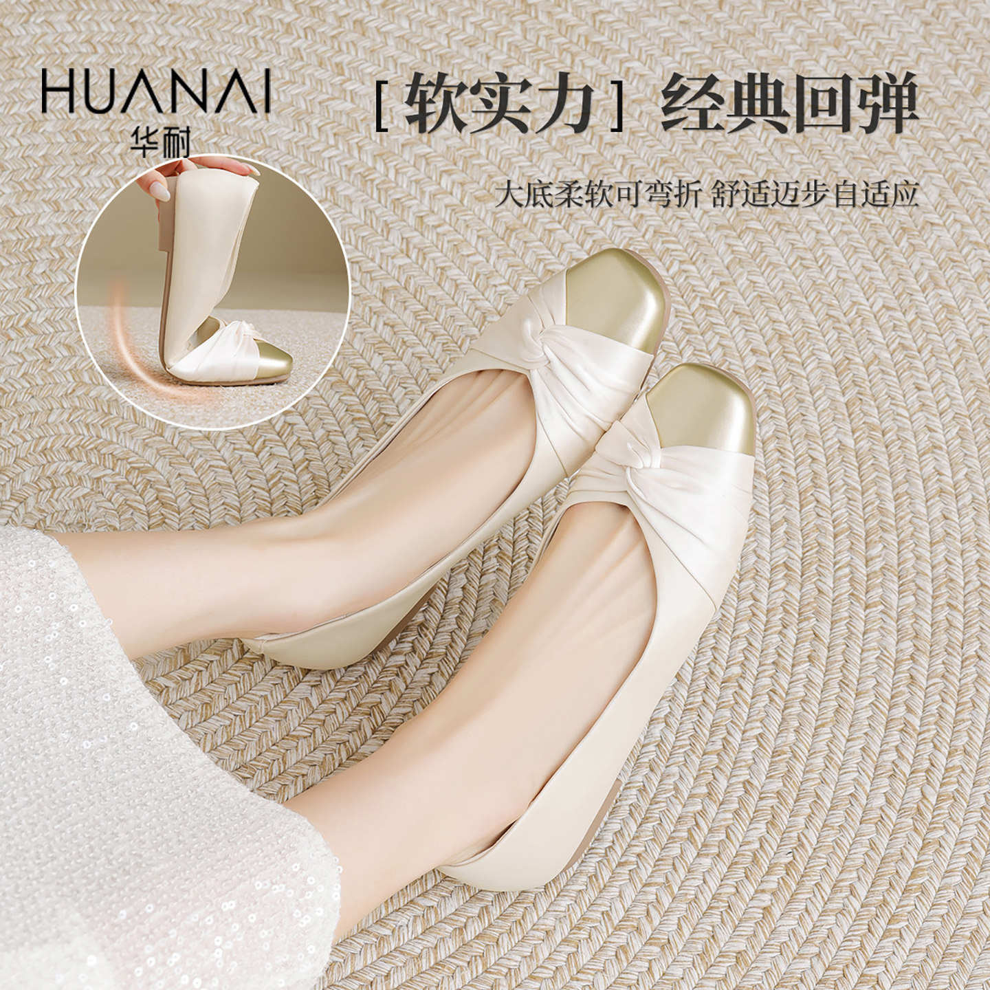 华耐法式小香风方头单鞋女2026新款春季仙女风配裙子气质软底鞋子