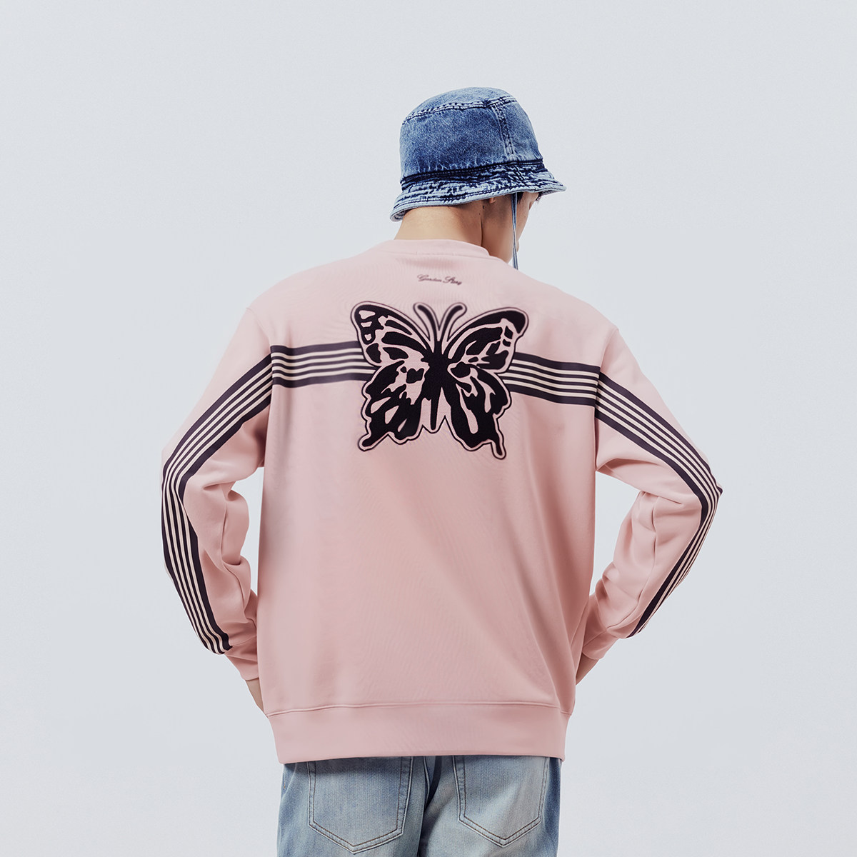 太平鸟男装休闲卫衣秋冬男士卫衣圆领套头衫条杠宽松立体刺绣