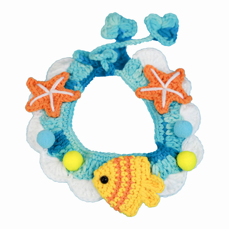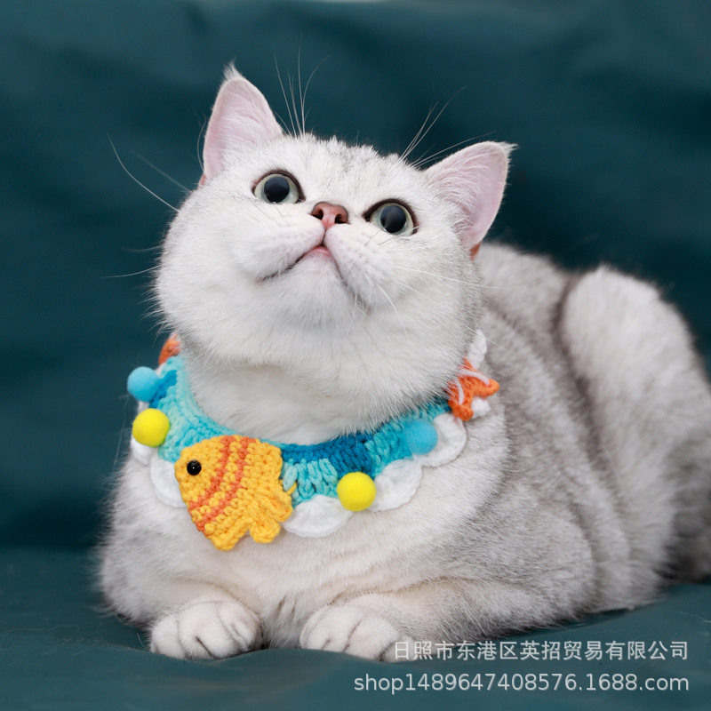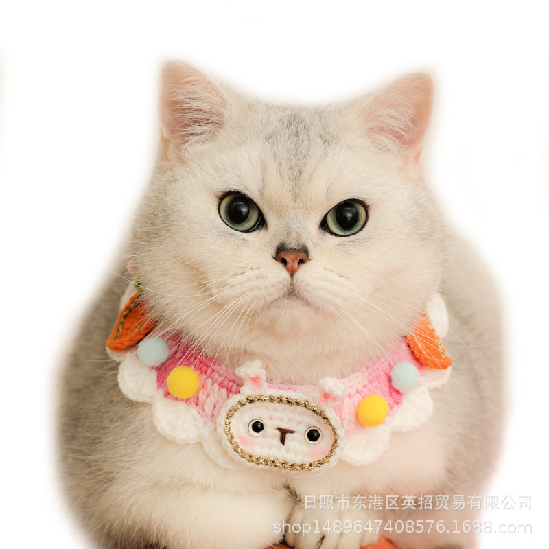 可爱兔兔纯手工海洋之恋宠物项圈猫咪领结围脖口水巾毛线针织狗狗