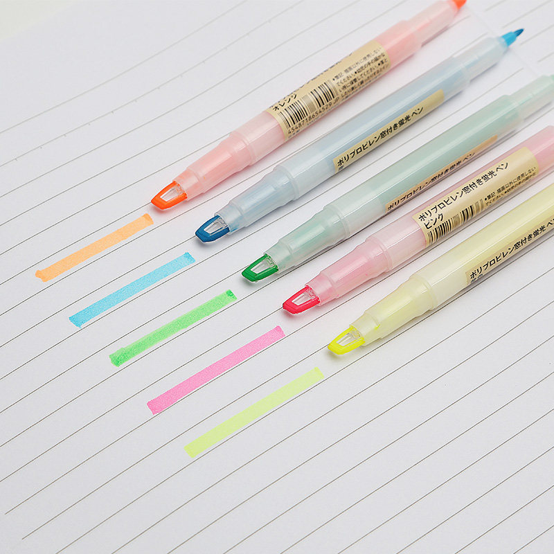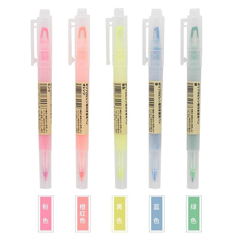 外贸捡漏日本MUJI无印良品橙色双头学生标记笔划重点记号笔荧光笔