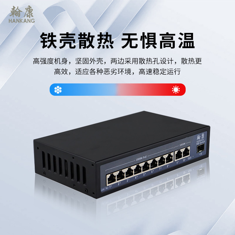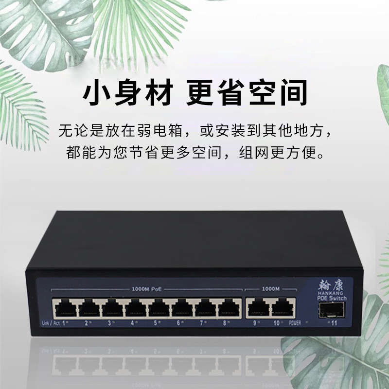 翰康poe交换机8口千兆百兆监控专用poe供电交换器国标网线网络分线器光纤交换机poe适用于海康大华TP摄像头