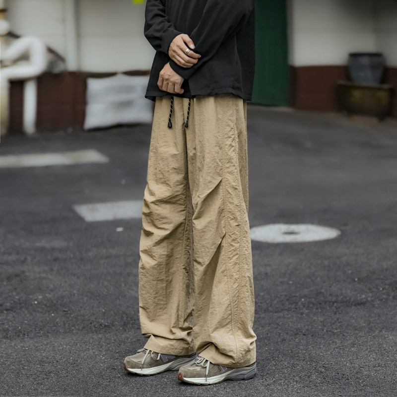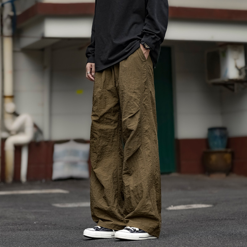 LR MADE 25SS 侧缝打褶 小弯刀垂感 碳磨洗水纯棉休闲廓形长裤