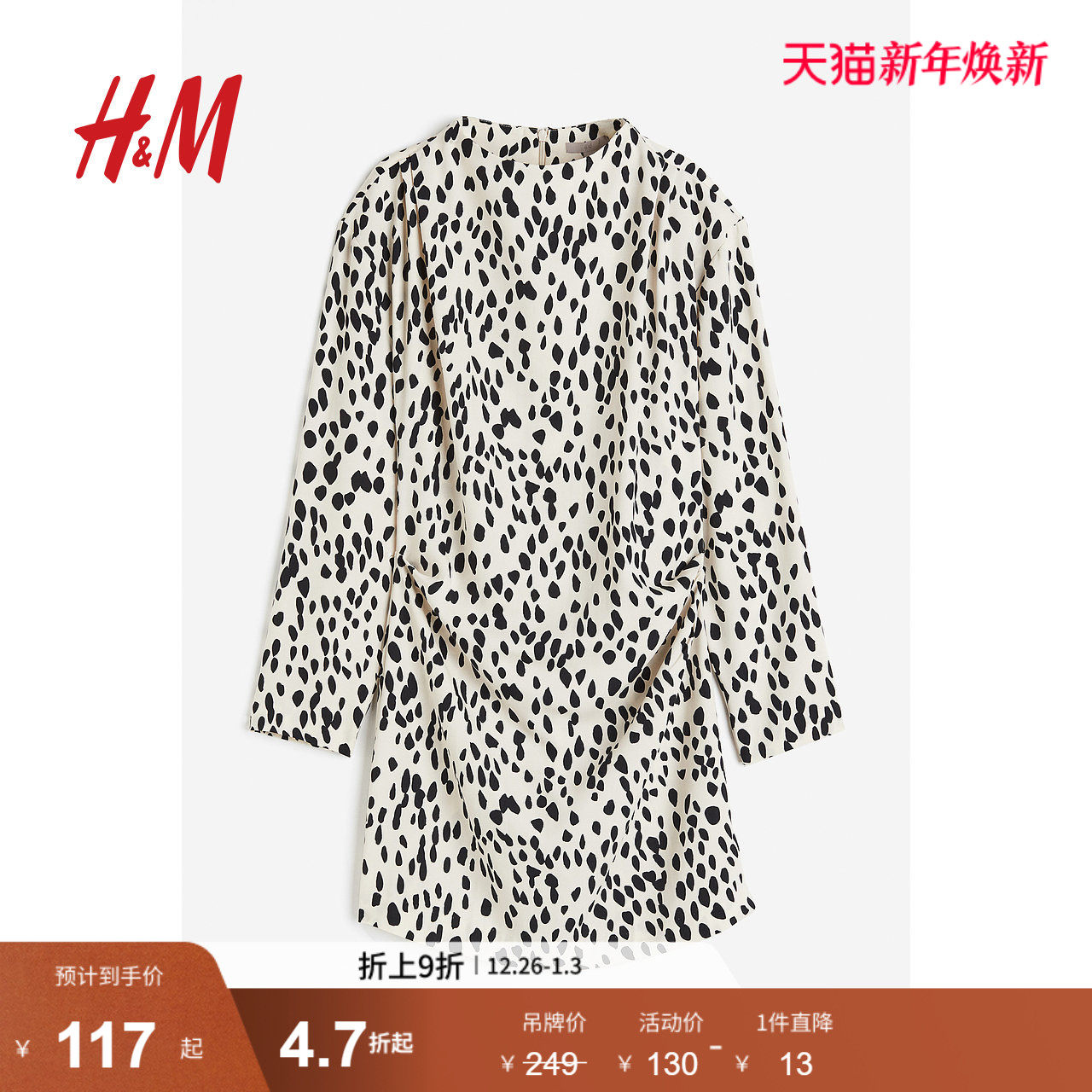 HM女装连衣裙冬季时尚垂坠感长袖立领波点短裙1198523