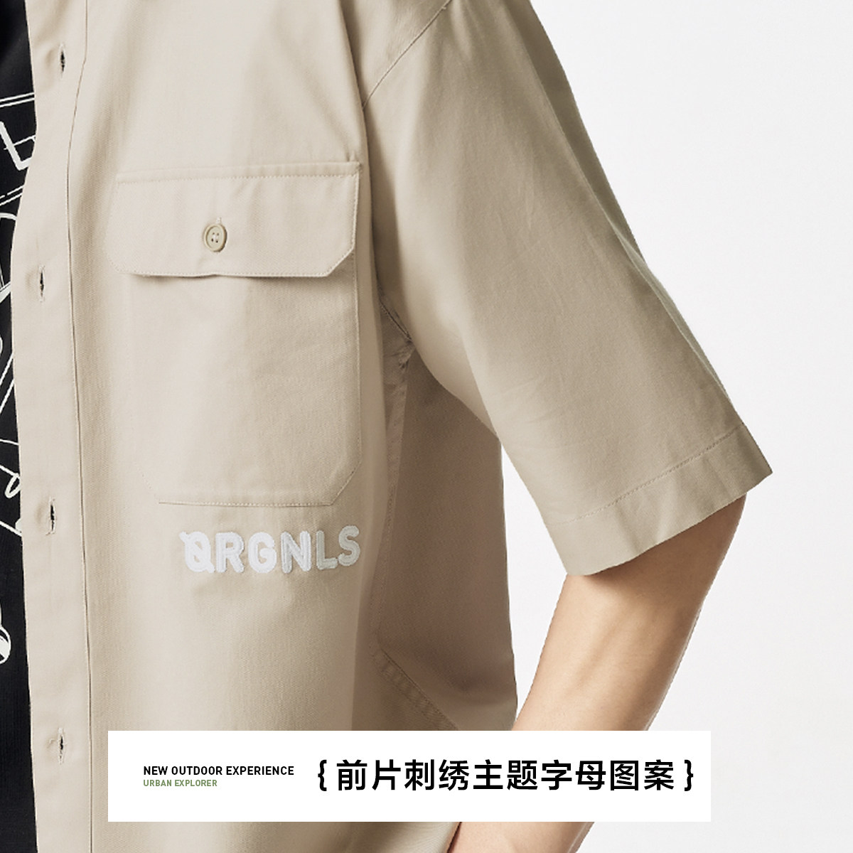 胸前工装口袋设计 字母刺绣装饰 两侧开叉设