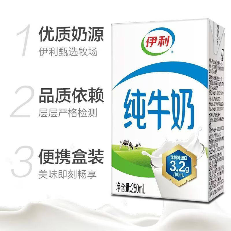伊利官方旗舰店纯牛奶250ml*16盒整箱学生营养早餐限时抢【9月】