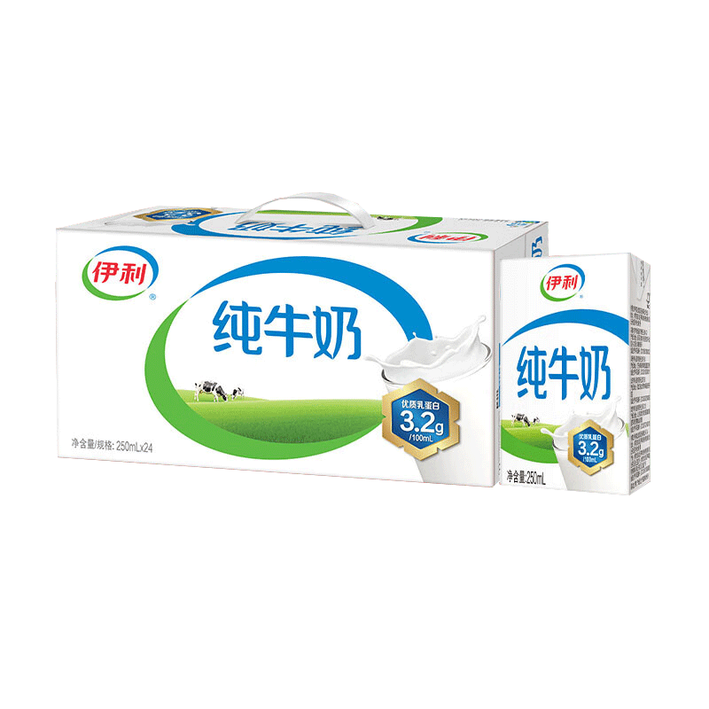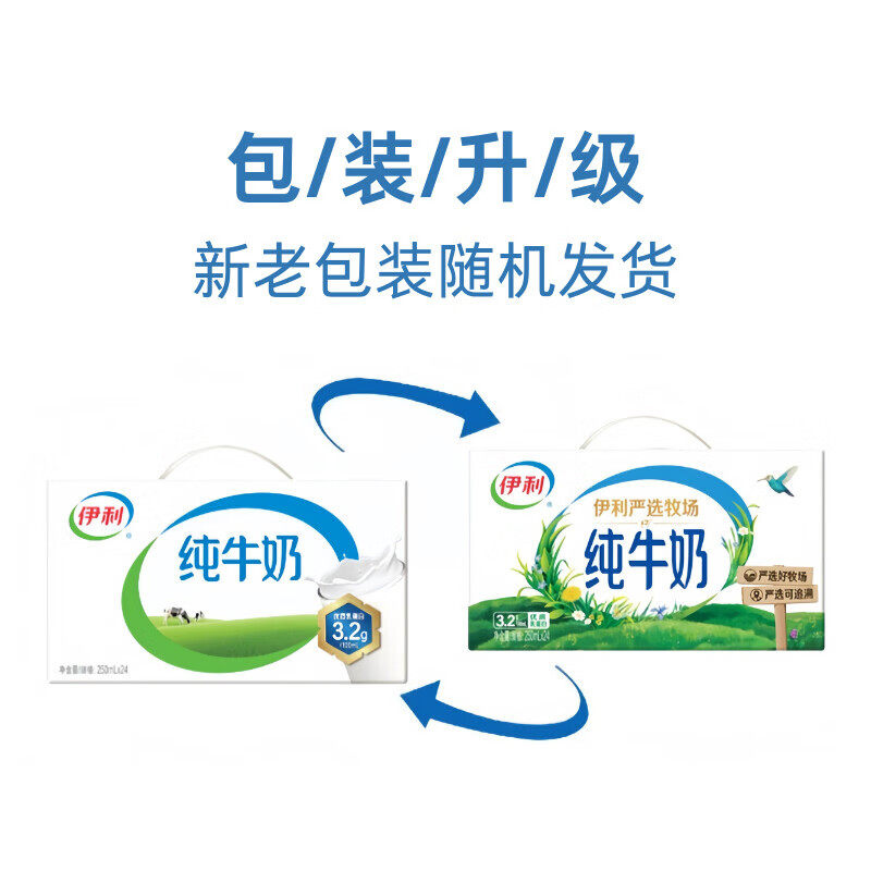 8月伊利纯牛奶250ml*24盒整箱/1提儿童学生营养早餐牛奶官方正品