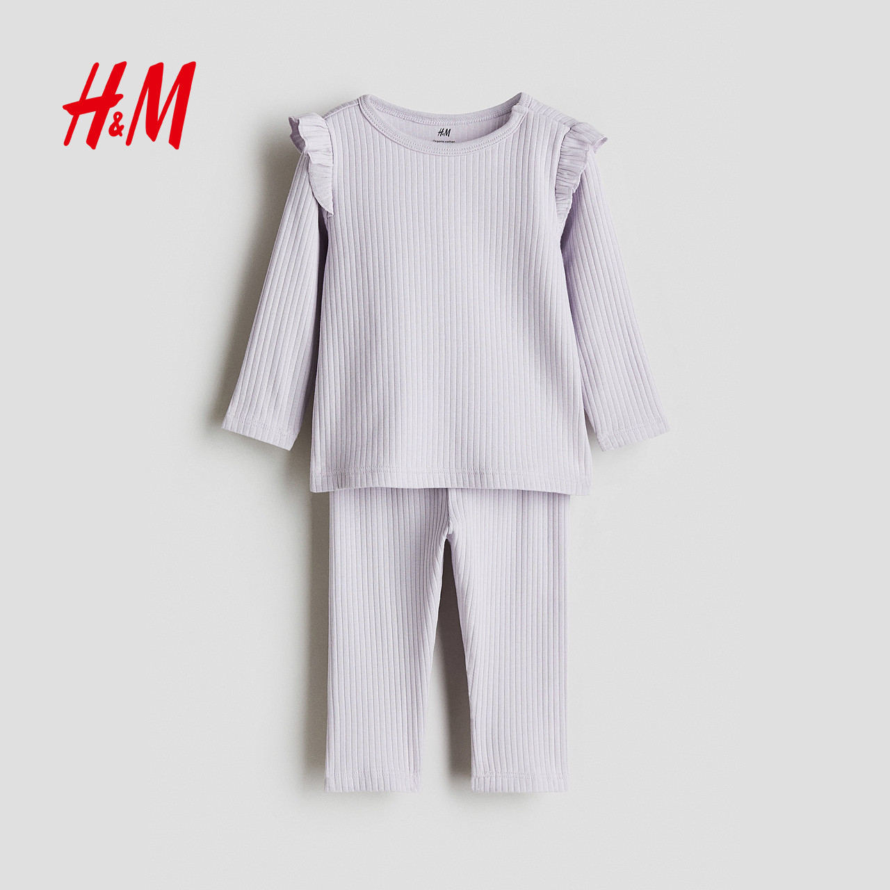HM2025冬季新款童装男婴女婴罗纹棉质套装0867135