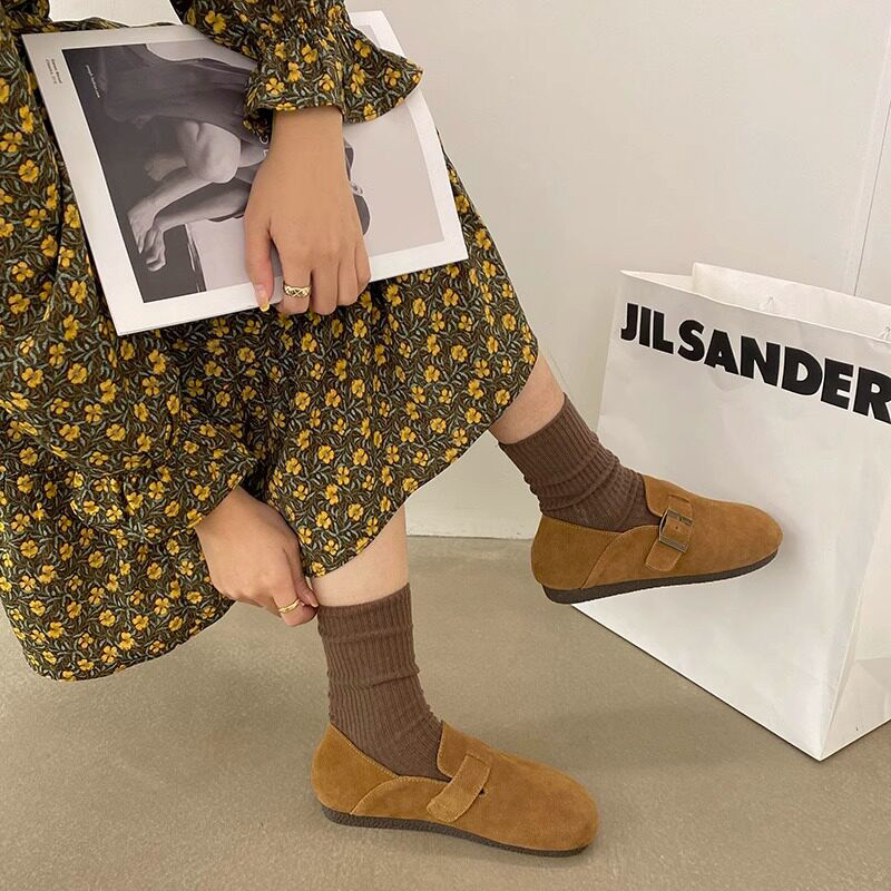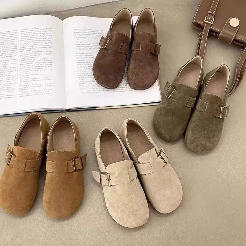 复古平底全包勃肯鞋一脚蹬博肯单鞋女鞋子2026新款春秋乐福豆豆鞋