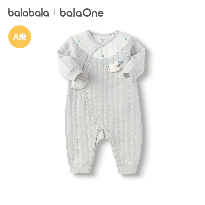 婧麒新生儿婴儿衣服秋冬夹棉满月纯棉初生宝宝秋装连体衣a类爬服