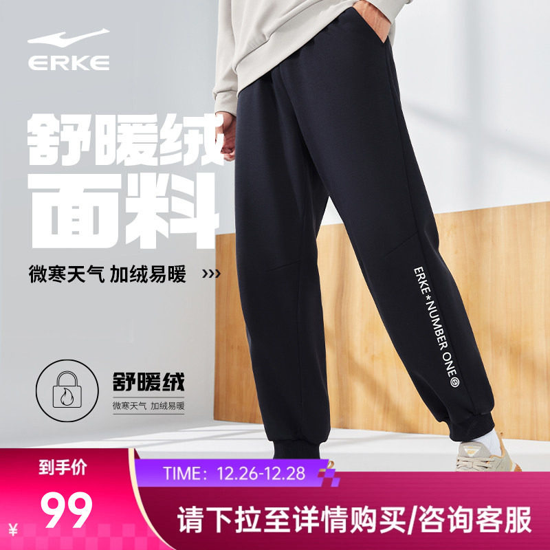 鸿星尔克运动裤男冬季新款男士加厚裤子加绒卫裤休闲男裤长裤冬装