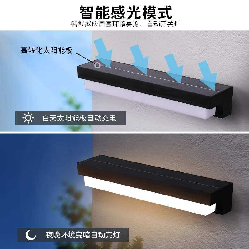 太阳能壁灯墙灯别墅庭院户外防水商铺门头门口门牌室外一字长条灯