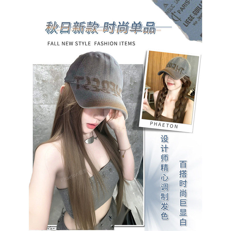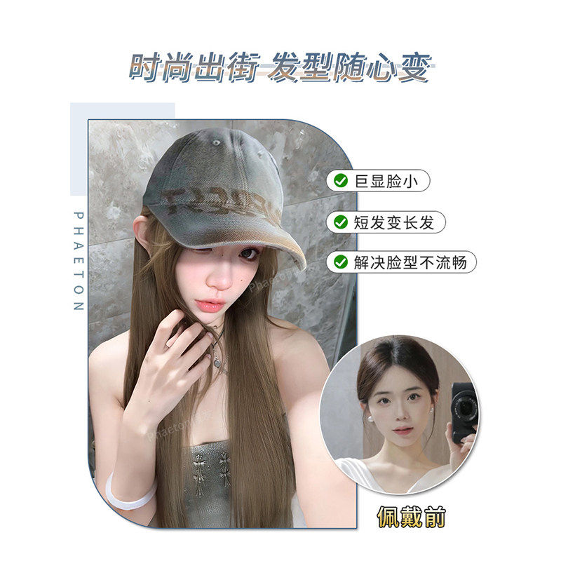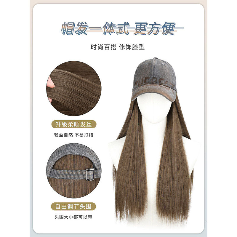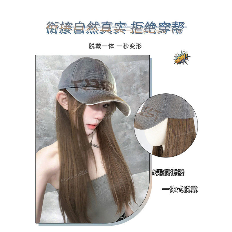 假发女全头套一体式仿真发美式复古棒球帽子假发自然可扎式长直发