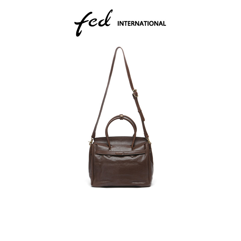 fed植鞣头层牛皮铂金包大容量托特包单肩手提包包女真皮BFA9088
