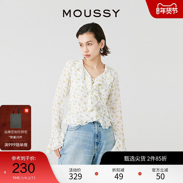 MOUSSY 夏季新品法式优雅甜美风春游碎花衬衫女028HSZ30-0511