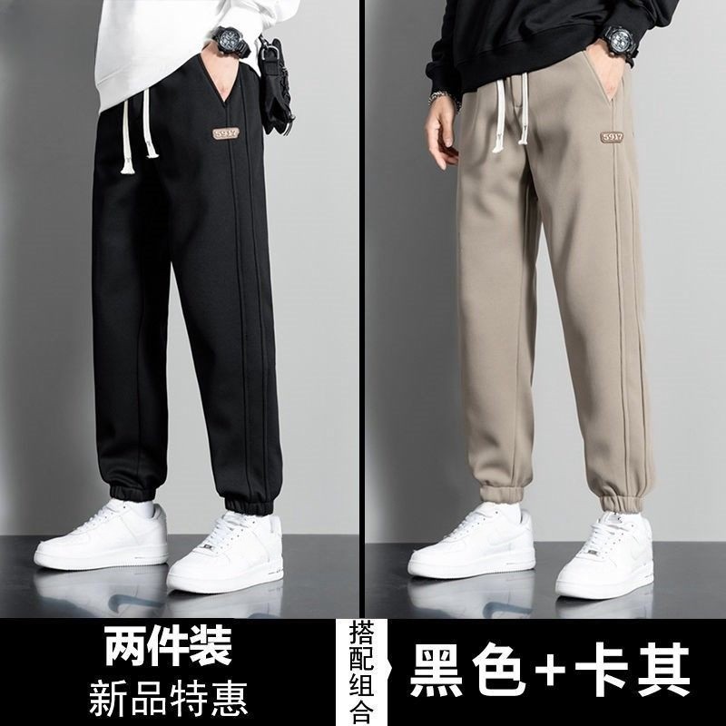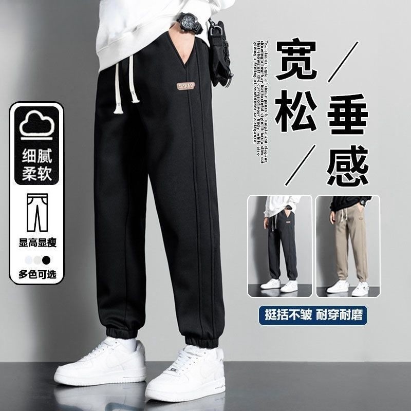 春秋季新款束脚运动卫裤男士宽松束脚哈伦冬季男生工装裤子加绒
