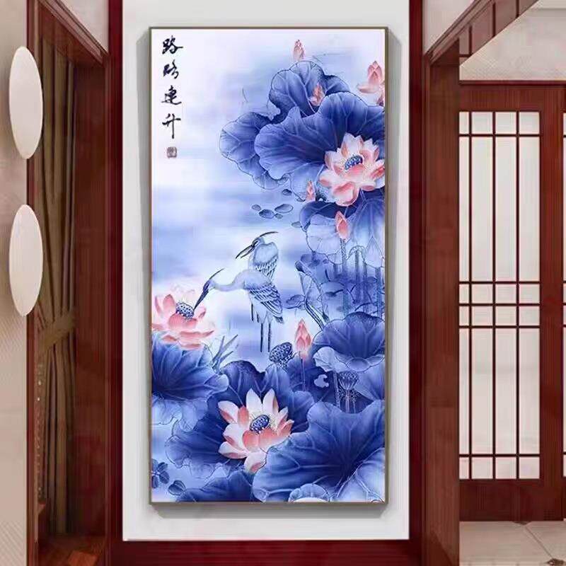 材料非成品-分好线路路连升十字绣2025新款线绣客厅蓝色莲花小件