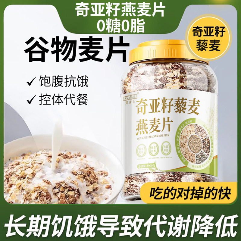 奇亚籽燕麦片早餐麦片主食代餐脂冲饮即食低无糖精旗舰店减专用肥