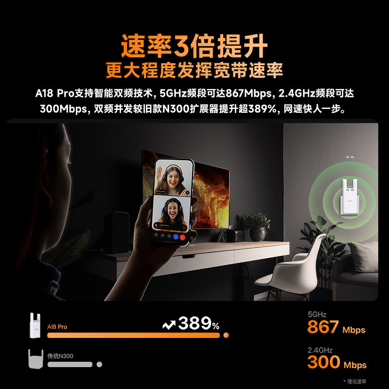 【官方自营】腾达wifi信号放大器增强器路由器中继器5G双频千兆无线网扩大器穿墙王家用接收器加强器A18pro