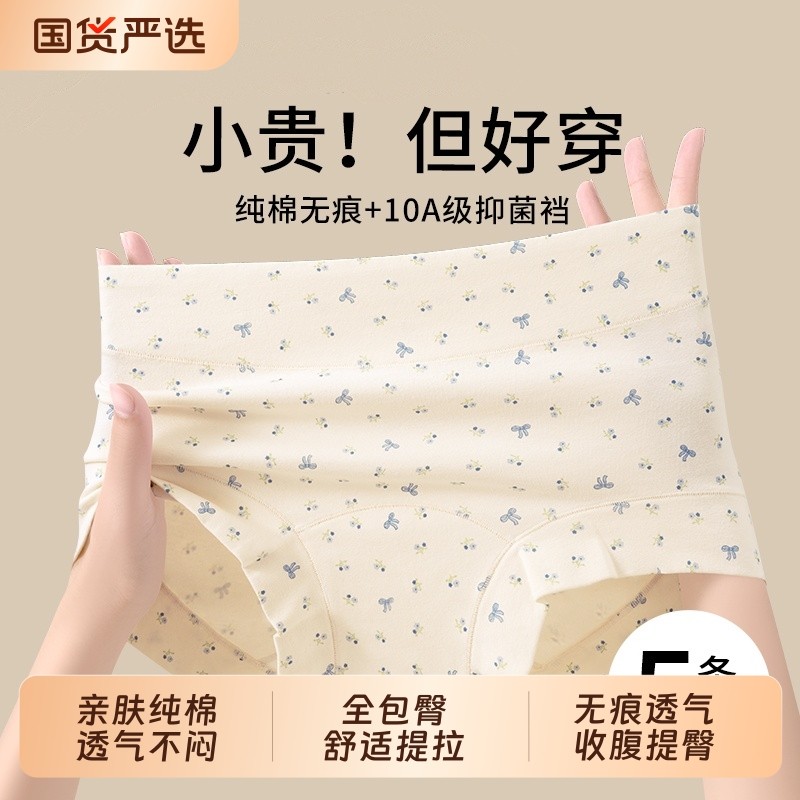 蝶安芬高腰内裤女纯棉抗菌2025新款无痕收腹三角提臀大码平角短裤