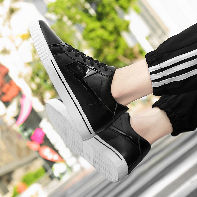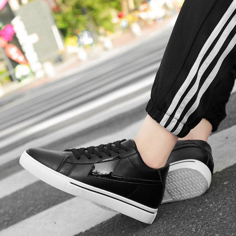 男鞋2026冬季内增高新款真皮潮流小白鞋男士休闲板鞋黑色隐形鞋带