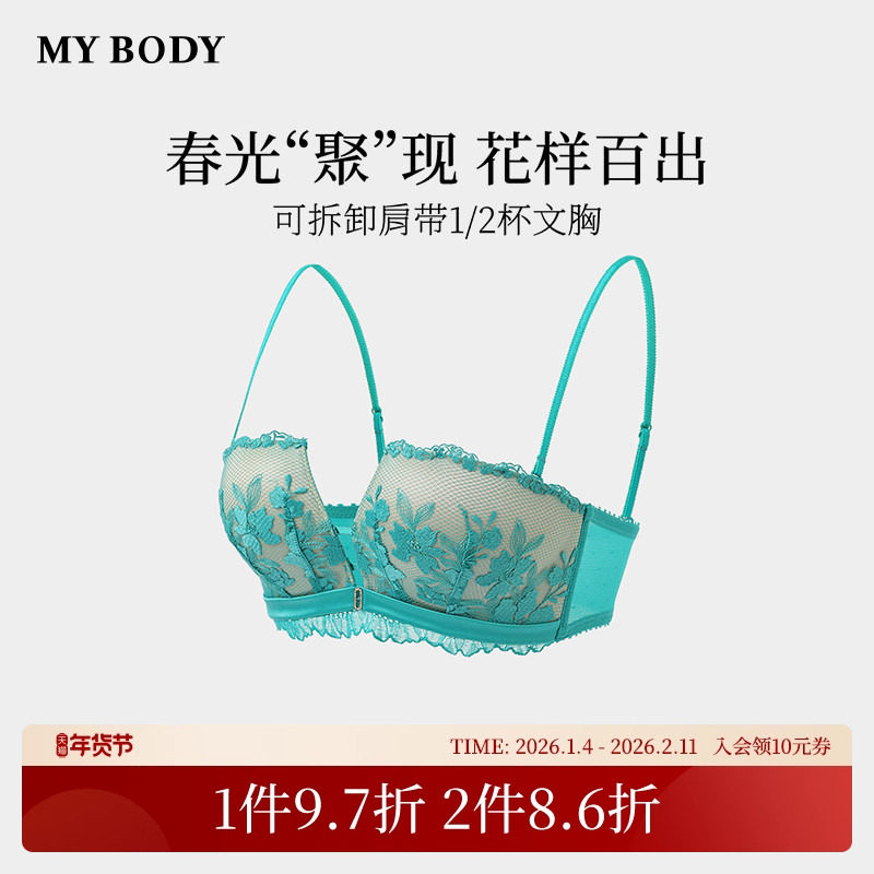 商场同款MYBODY内衣女薄款性感蕾丝小胸聚拢法式复古半杯文胸胸罩
