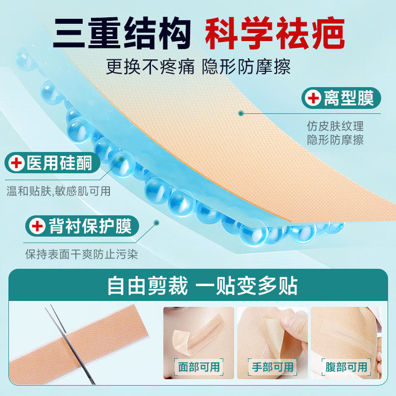 医用祛疤贴疤痕增生凸起疙瘩修复剖腹产遮疤痕隐形硅酮凝胶膏沉淀