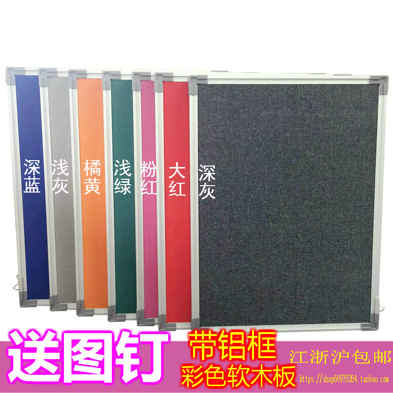 铝框彩色麻布f软木板照片墙90*120CM水松板留言学校公告栏展示板