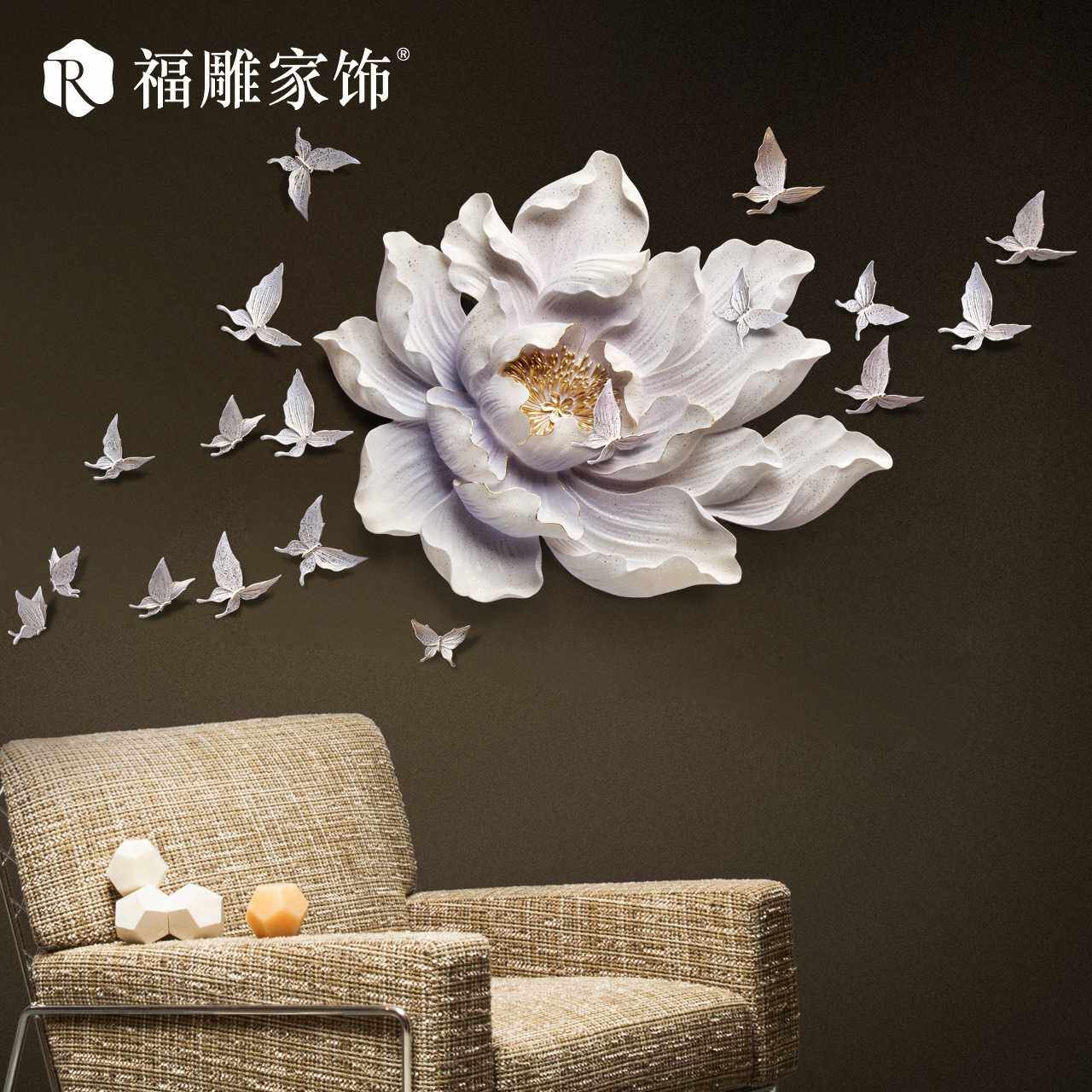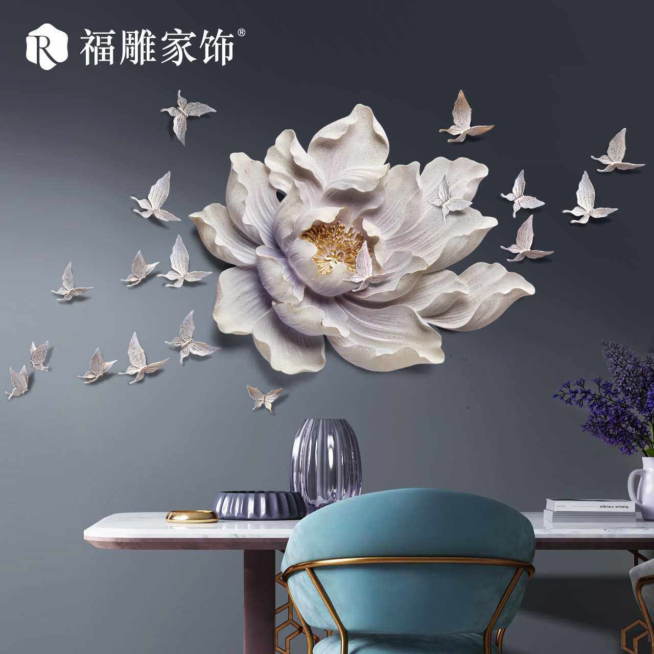 福雕家饰3d立体装饰画墙饰立体花卉墙壁挂饰壁饰现代中式创意挂件