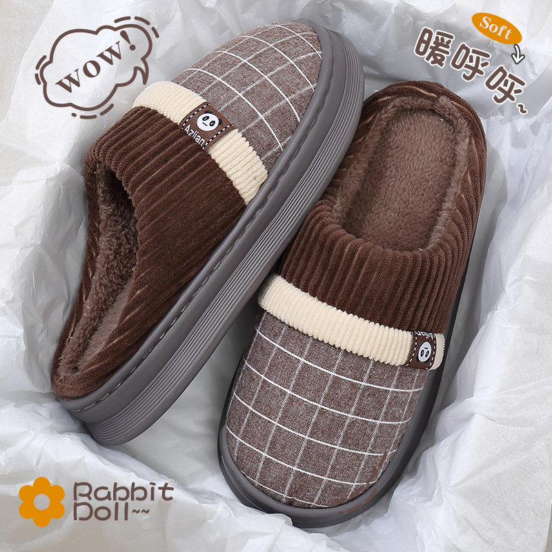 红豆踩屎感棉拖鞋女士秋冬季室内家居2025新款毛绒保暖情侣棉拖男