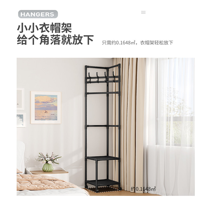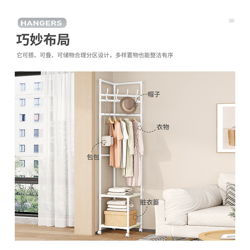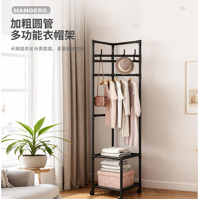 转角衣帽架落地卧室挂衣架置物架家用拐角挂衣服架子墙角收纳客厅