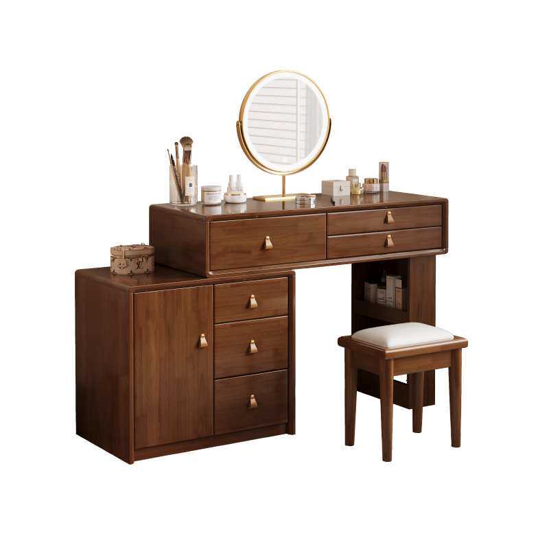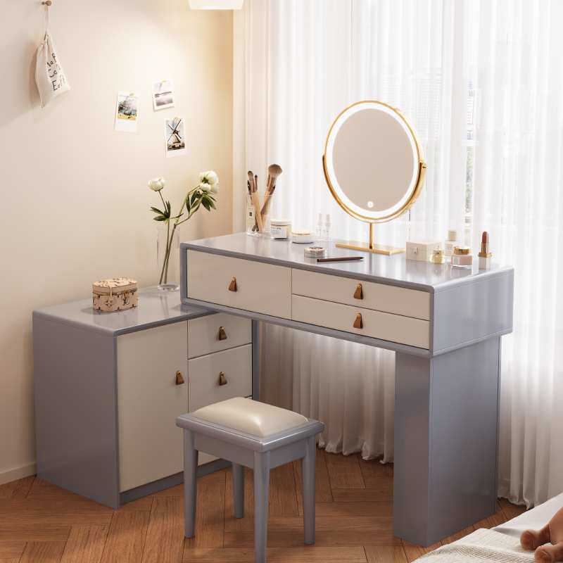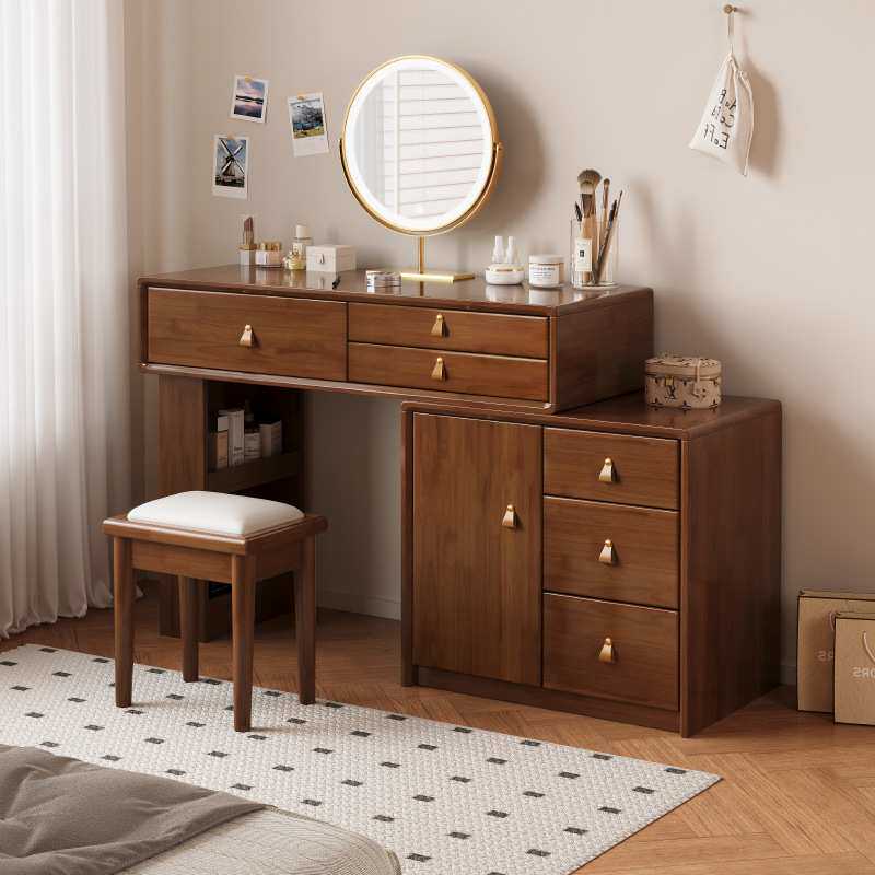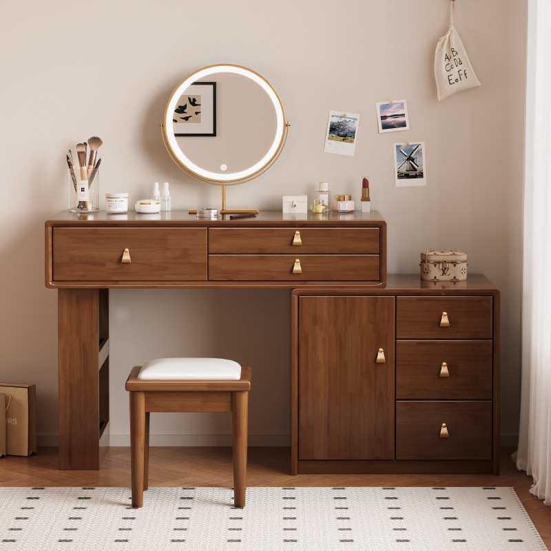 实木奶油风梳妆台卧室简约现代斗柜一体大容量化妆桌大小户型妆台