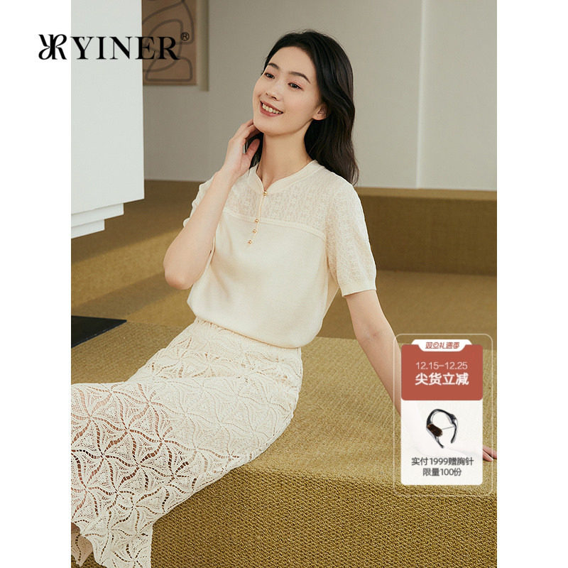 YINER音儿专选2025夏季新款新中式立领蚕丝羊毛混纺针织衫套头