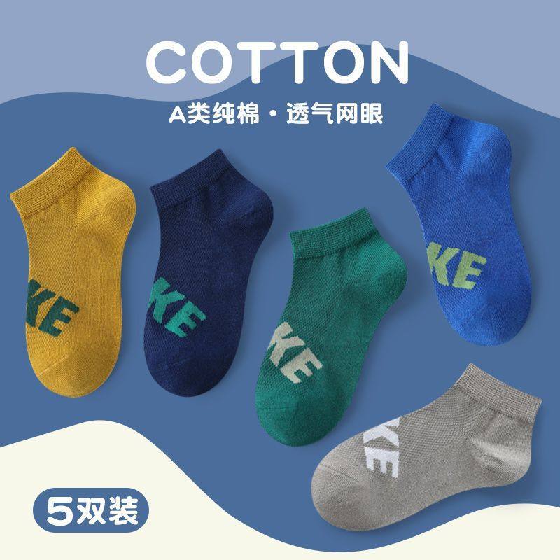 纯棉A级男童袜子春夏薄款儿童短袜网眼透气夏季吸汗防臭袜中大童