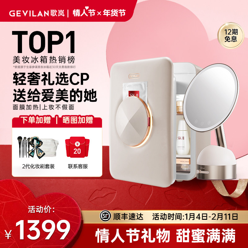 歌岚美妆镜冰箱台式带灯梳妆镜桌面补光3D联动镜面led化妆镜复古